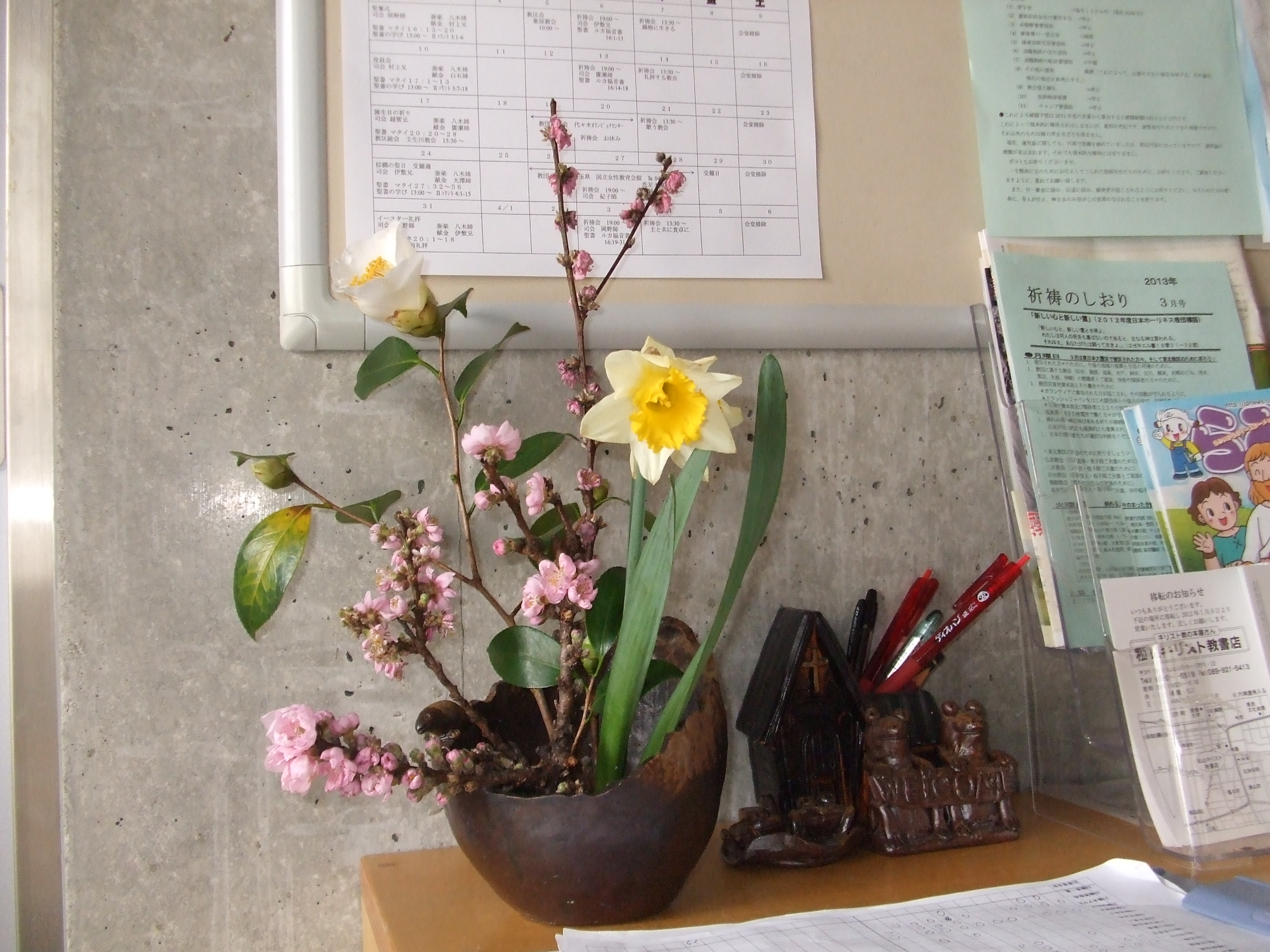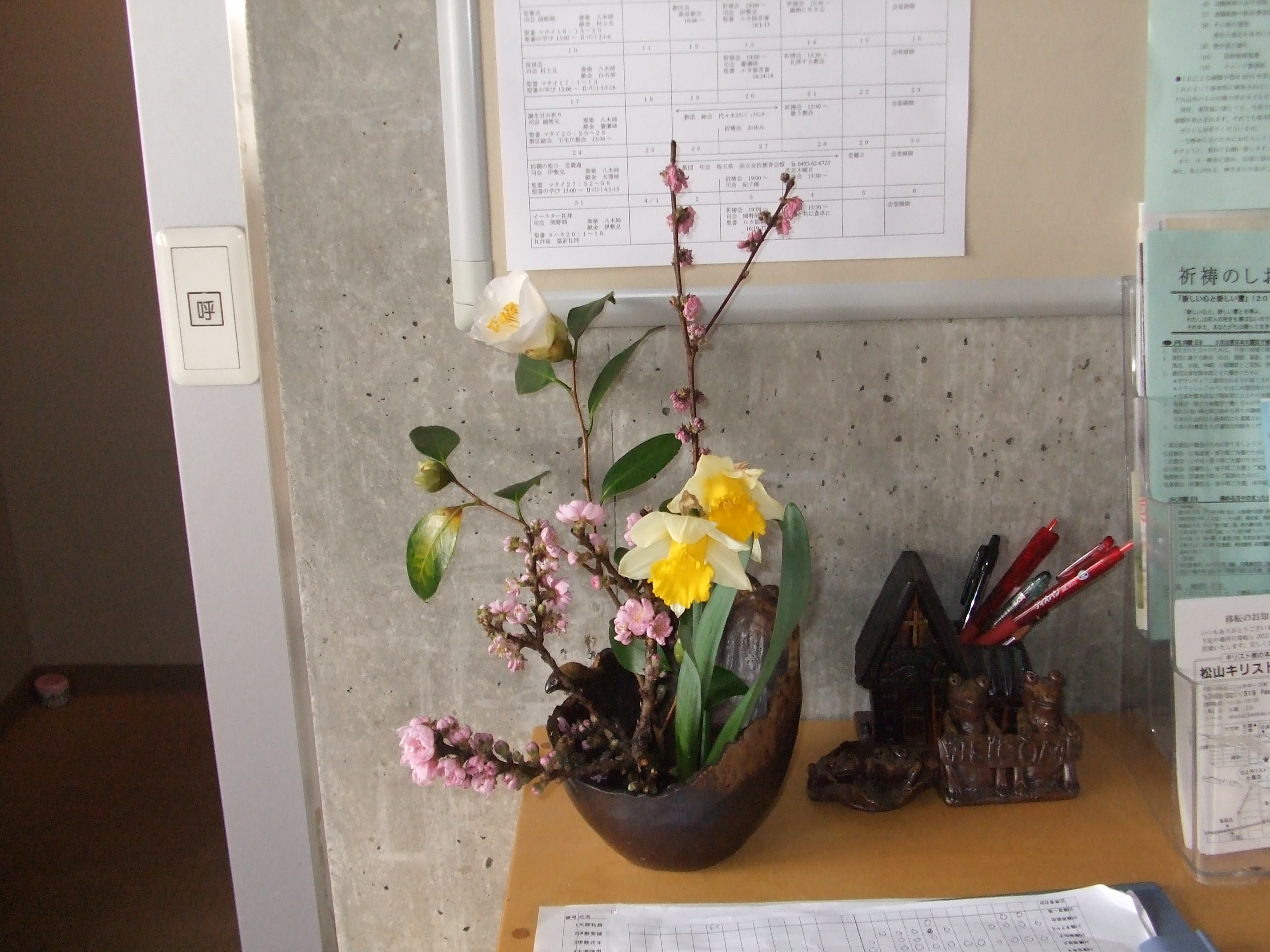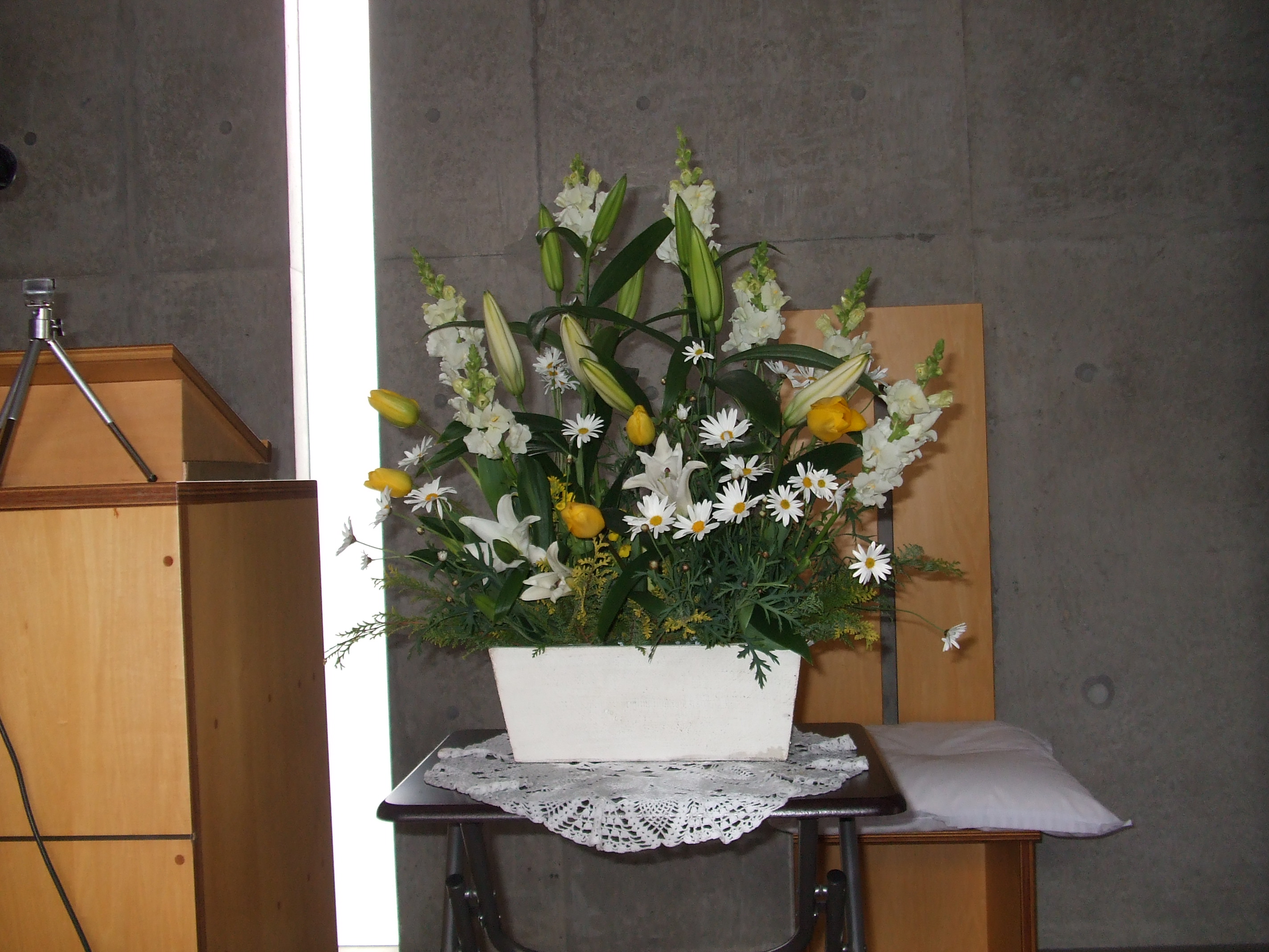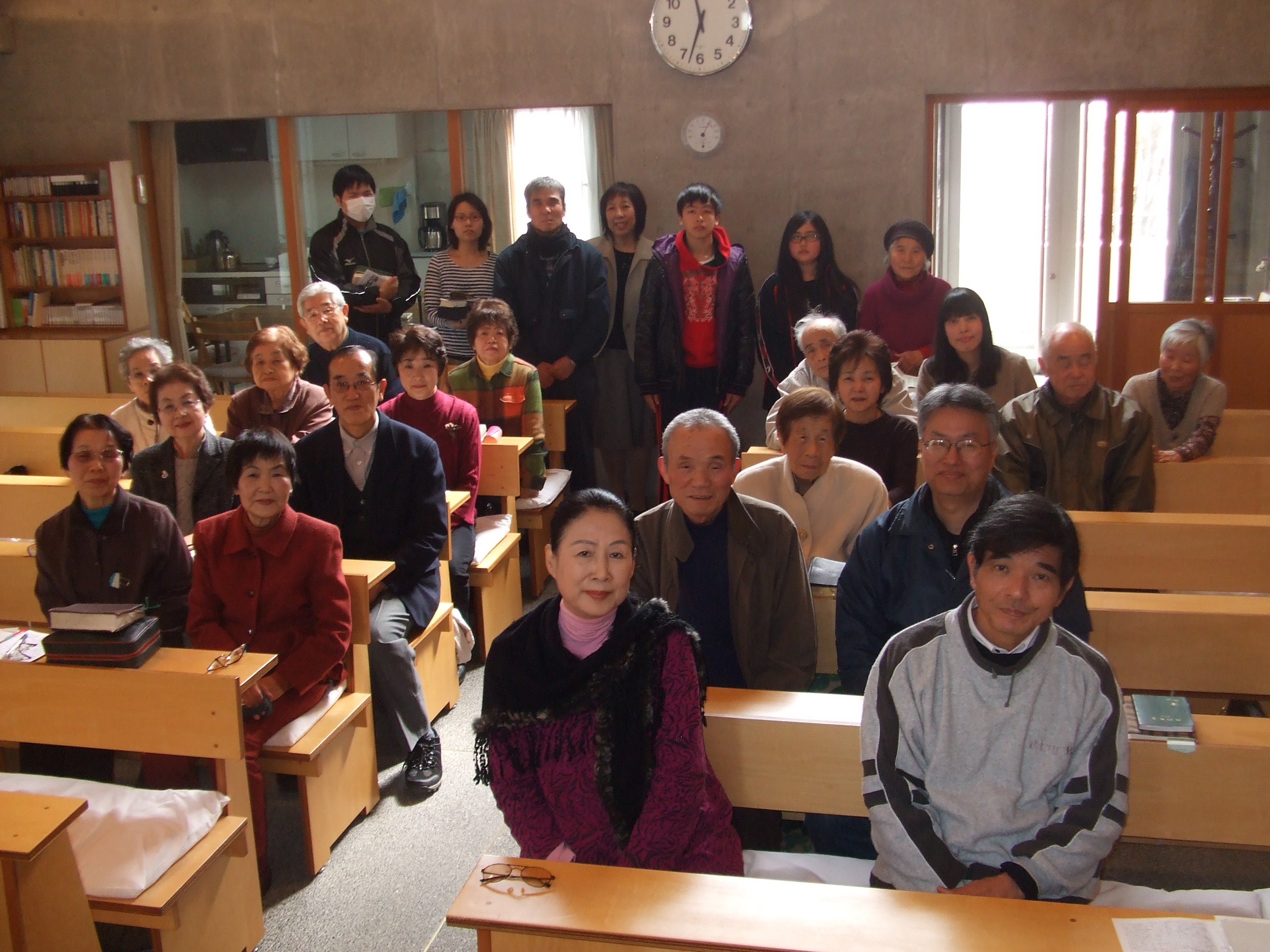 礼拝堂の様子です。コンクリートの打ちっ放しです。礼拝堂は2階にあります。エレベーターか外階段をお使い下さい。礼拝は午前10時15分からです。11時30分過ぎに終了します。 隣の家が立て替えの時の撮影しました。壁が雨のせいで汚れていますが、少しきれいにしました。 その他、少しスライドを並べました。