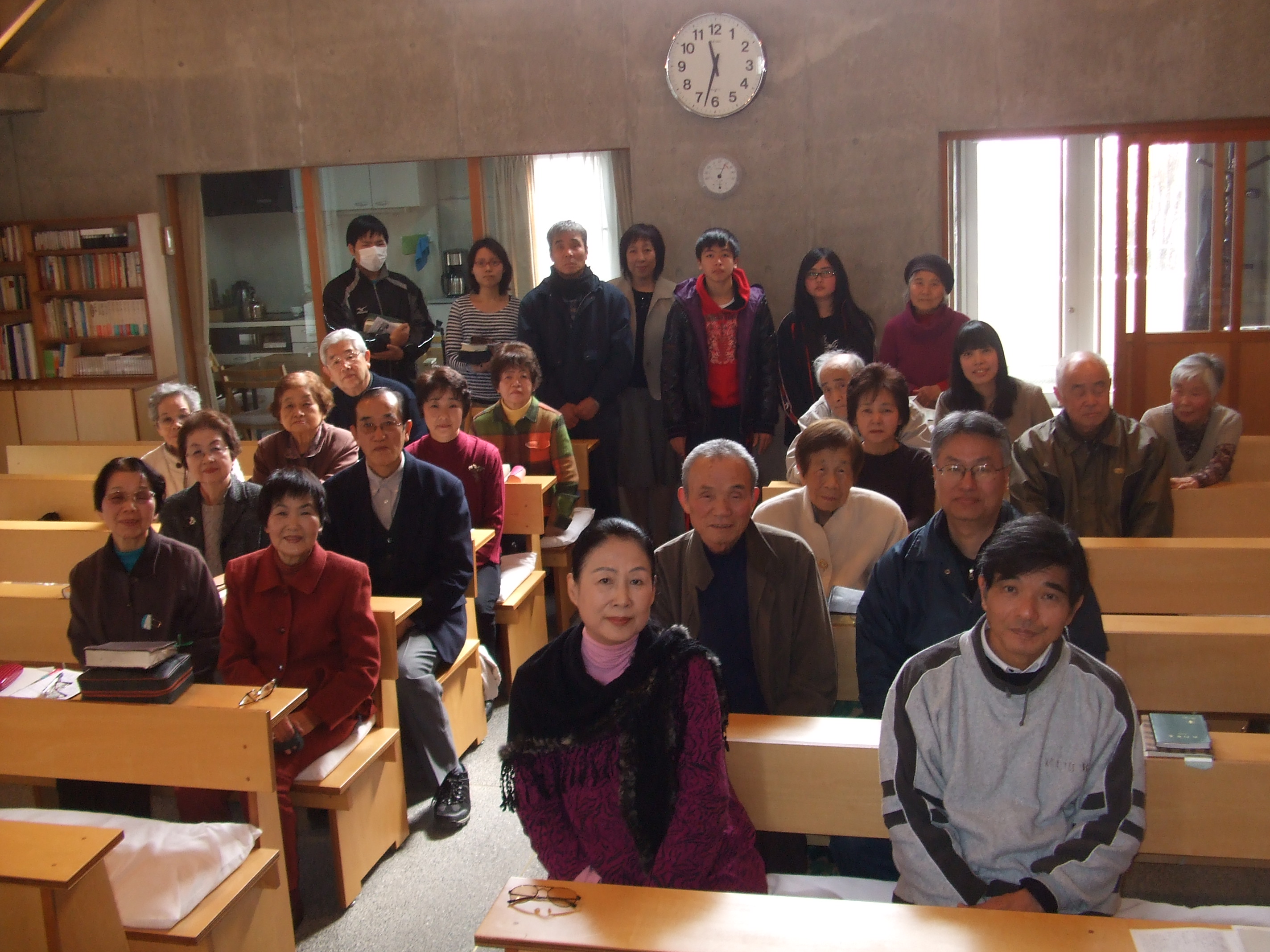 礼拝堂の様子です。コンクリートの打ちっ放しです。礼拝堂は2階にあります。エレベーターか外階段をお使い下さい。礼拝は午前10時15分からです。11時30分過ぎに終了します。 隣の家が立て替えの時の撮影しました。壁が雨のせいで汚れていますが、少しきれいにしました。 その他、少しスライドを並べました。
